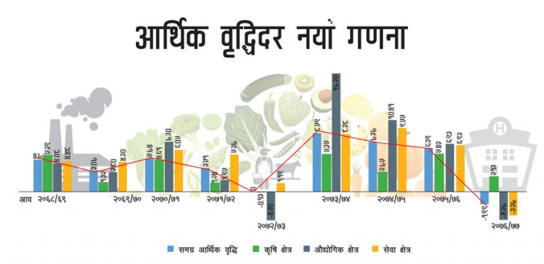 कोभिड–१९ को सङ्क्रमण शुरु भएपछि अन्तराष्ट्रिय स्तरमा आर्थिक गतिविधिमा आएको कमी तथा सङ्क्रमण को जोखिम कम गर्न सरकारले घोषणा गरेको बन्दाबन्दीका कारण आर्थिक गतिविधि उल्लेख्य रूपमा सङ्कुचन भएकोले केन्द्रीय तथ्याङ्क विभागले आ. व. २०७६/७७ मा देशको आर्थिक वृद्धि २.३ प्रतिशतमा सीमित रहने प्रारम्भिक अनुमान २०७७ वैशाखमा सार्वजनिक गरेको थियो। तत्पश्चात पनि बन्दाबन्दीको अवस्था कायम रहेकोले आर्थिक क्रियाकलाप थप प्रभावित हुन गई सो अनुमान अनुसारको वृद्धि पनि हासिल हुन कठिन हुने देखिन्छ ।